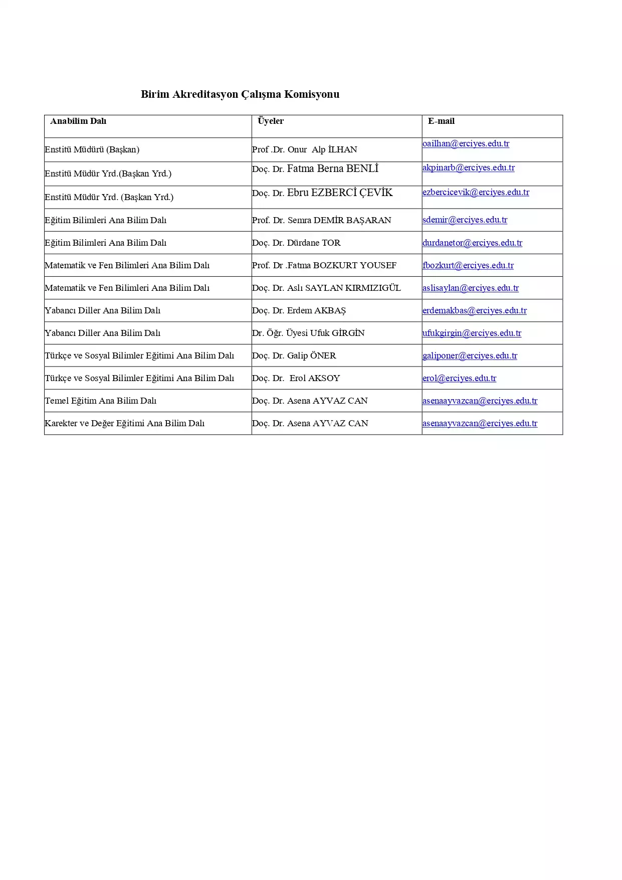 Birim Akreditasyon Çalışma Komisyonu